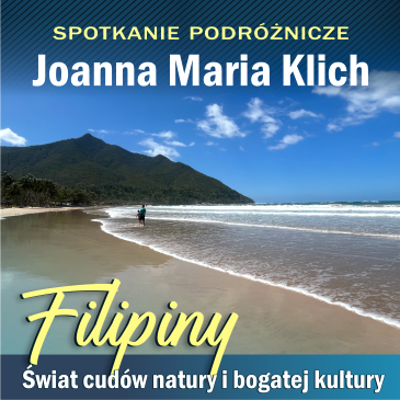 Serdecznie zapraszamy na wyprawę na Filipiny – kraju składającego się z ponad 7 tysięcy wysp położonych na Oceanie Spokojnym, który wyróżnia się specyficznym dziedzictwem kulturowym, będącym efektem wielości i różnorodności zamieszkujących je grup etnicznych oraz wpływu kolonialnego panowania Hiszpanii i Stanów Zjednoczonych. O bogatej kulturze, tradycjach, wierzeniach, relacjach z rdzennymi mieszkańcami Filipin oraz zderzeniu zwyczajów europejskich z filipińskimi opowie Joanna Maria Klich – fotografka, od ośmiu lat mieszkająca na wyspie Palawan na Filipinach, gdzie założyła i prowadziła ośrodek wypoczynkowy dla turystów. Spotkanie uzupełni prezentacja zdjęć.